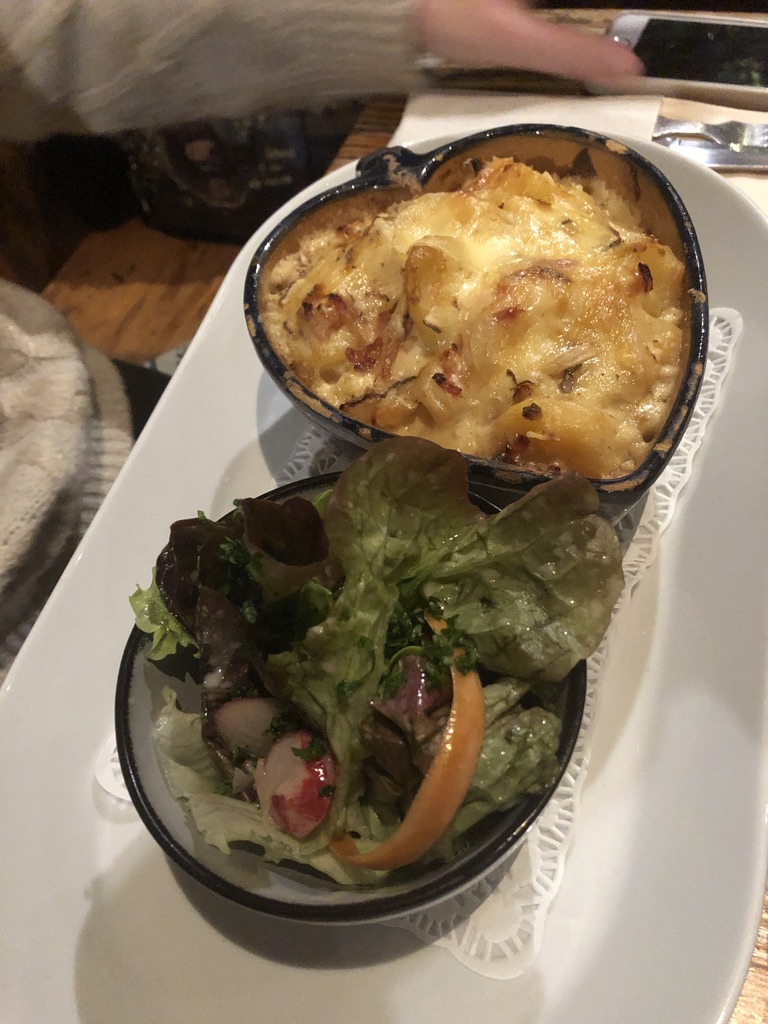 Nous tentons ensuite notre chance dans le restaurant Soi qui avait justement une table pour deux disponible. Ce restaurant ne sert que des flammkueche et est réputé pour ça dans la ville ! La salle est très petite et je n’avais pas réussi à réserver une table en appelant une semaine à l’avance. Nous prenons une flammkueche pour deux et elle était vraiment délicieuse.