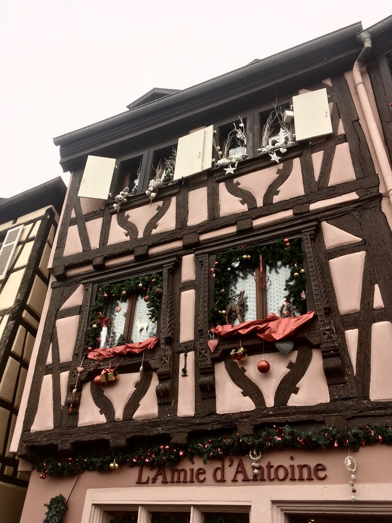 Nous commençons par celui de l’Ancienne Douane et profitons également des boutiques de Colmar. Il fait froid mais ne pleut pas et nous en profitons pour manger un sandwich au foie gras délicieux acheté sur un stand.