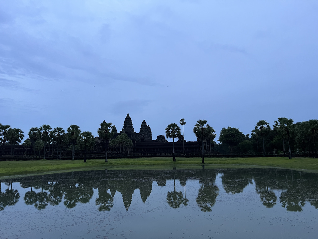 Nous commençons par Angkor Wat pour y voir le lever du soleil, nous y arrivons dans le noir complet. Malheureusement, en raison des nuages nous n’avons pas de couleurs spectaculaires mais la découverte des temples avec la lumière qui s’accroit est un moment qui reste unique.