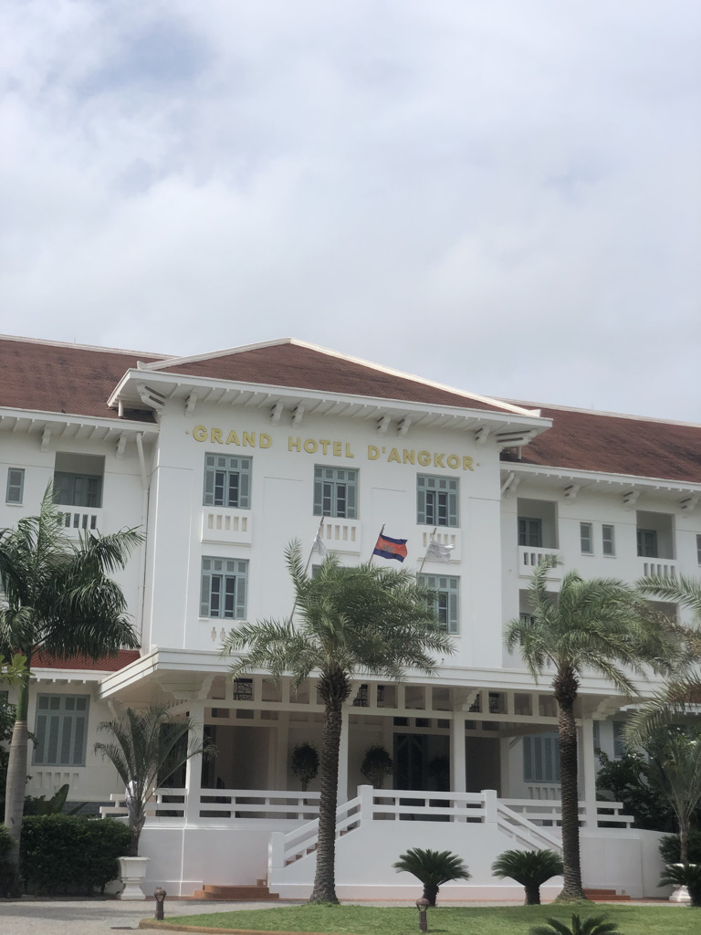 Nous nous rendons ensuite au Grand Hôtel d’Angkor pour y déguster un cocktail. C’est une magnifique construction datant de l’époque coloniale. Les cocktails sont délicieux, et le service évidemment impeccable. L’hôtel dispose aussi d’un immense jardin avec une piscine gigantesque réservée aux clients de l’hôtel.