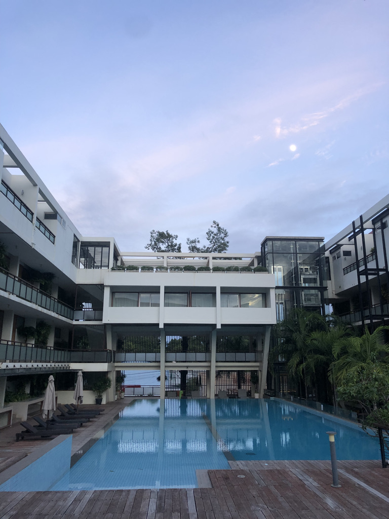 Il pleut déjà à notre arrivée, ça nous met directement dans l’ambiance de la saison des pluies mais on décide de profiter quand même de l’immense piscine !
