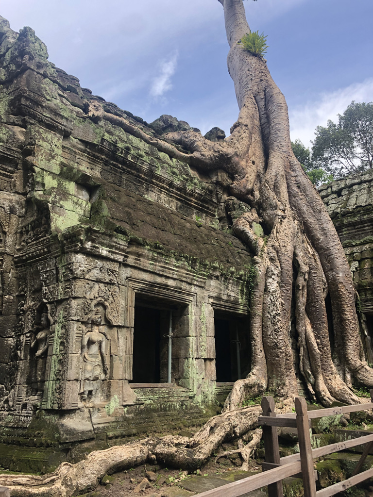 Retour à proximité de Siem Reap où on décide de refaire le temple Ta Prohm (tomb raider) car nous avions un coup de cœur (sous la pluie) et voulions en profiter pour le voir sous le soleil : il est toujours aussi beau. La végétation se mêle au temple, le sentiment est indescriptible. On se sent tout petit face à ce temple.