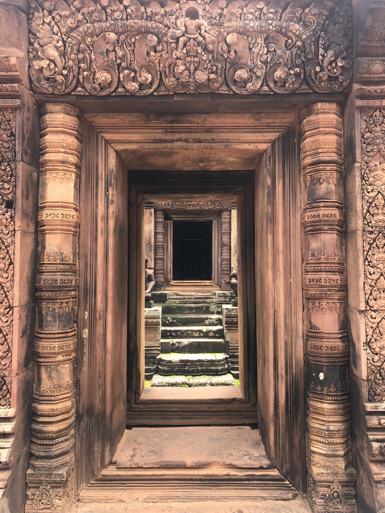 On commence par Banti Srei, le temple d’André Malraux, situé à 1 heure de route de Siem Reap. André Malraux, sans argent après un placement malheureux, y avait volé des statuts du temple pour les revendre ensuite. Il a été condamné à trois ans de prison ferme mais sa peine a été réduite à un an. en appel Le temple a, depuis, été très bien rénové, il est beau et il y a très peu de monde. Le trajet pour y aller est aussi joli : on passe à travers des villages et des rizières.