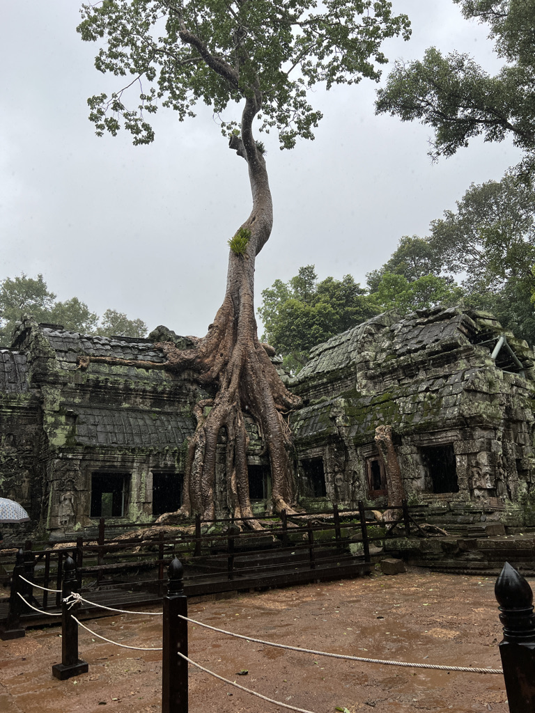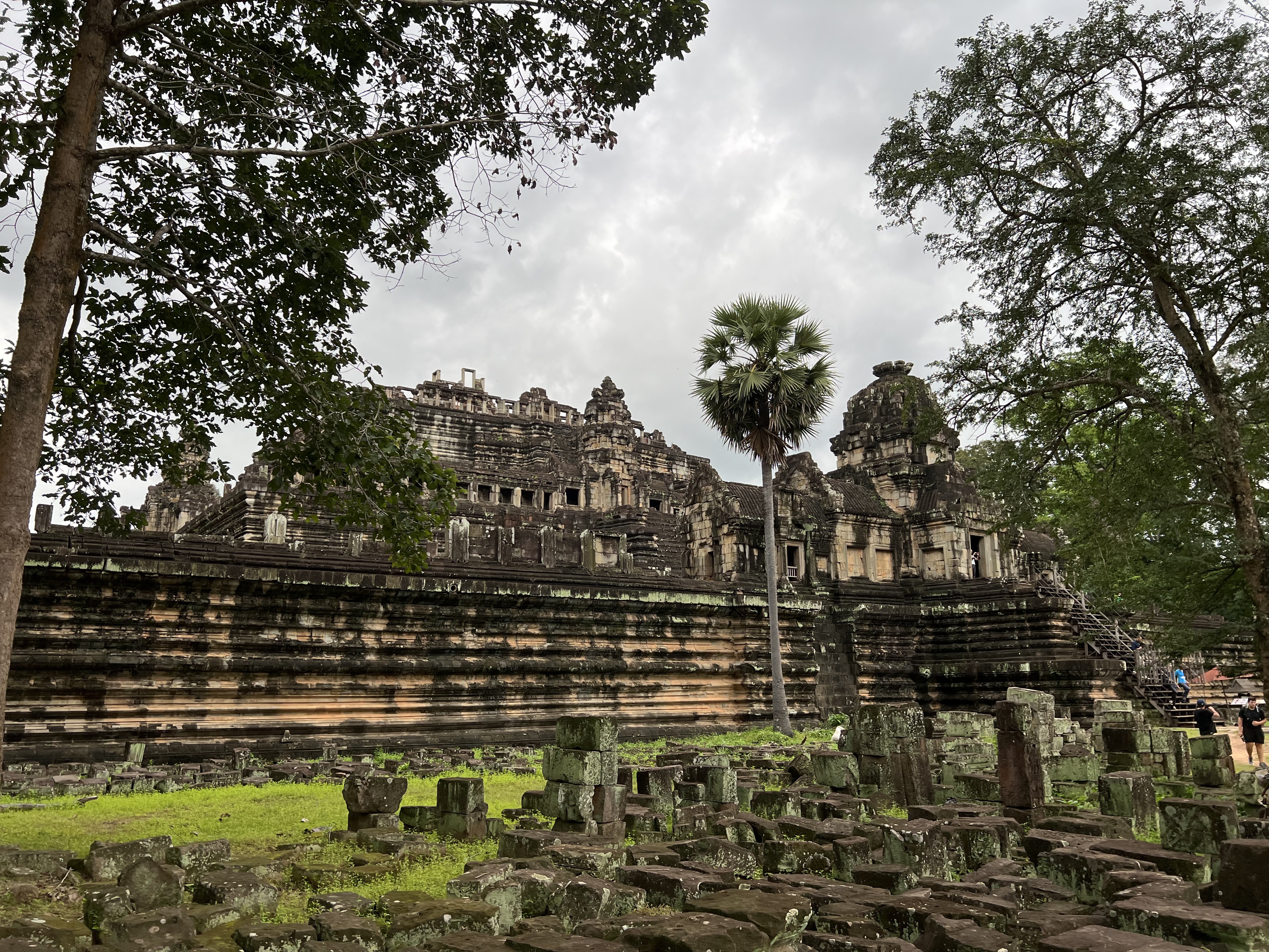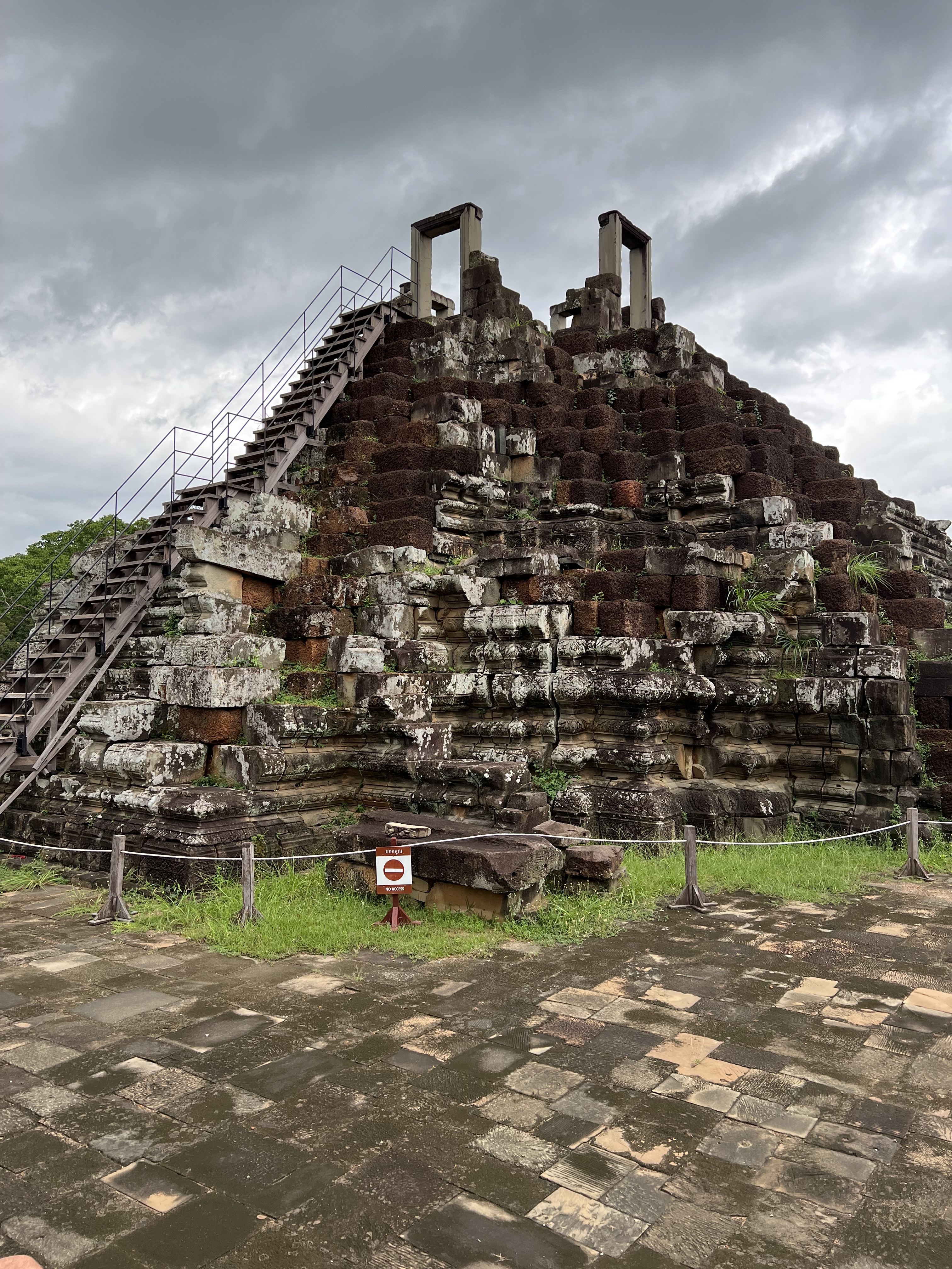 Nous ne pouvons malheureusement pas visiter le temple Baphuon car il pleut désormais trop fort et que le temple a été fermé pour des raisons de sécurité.