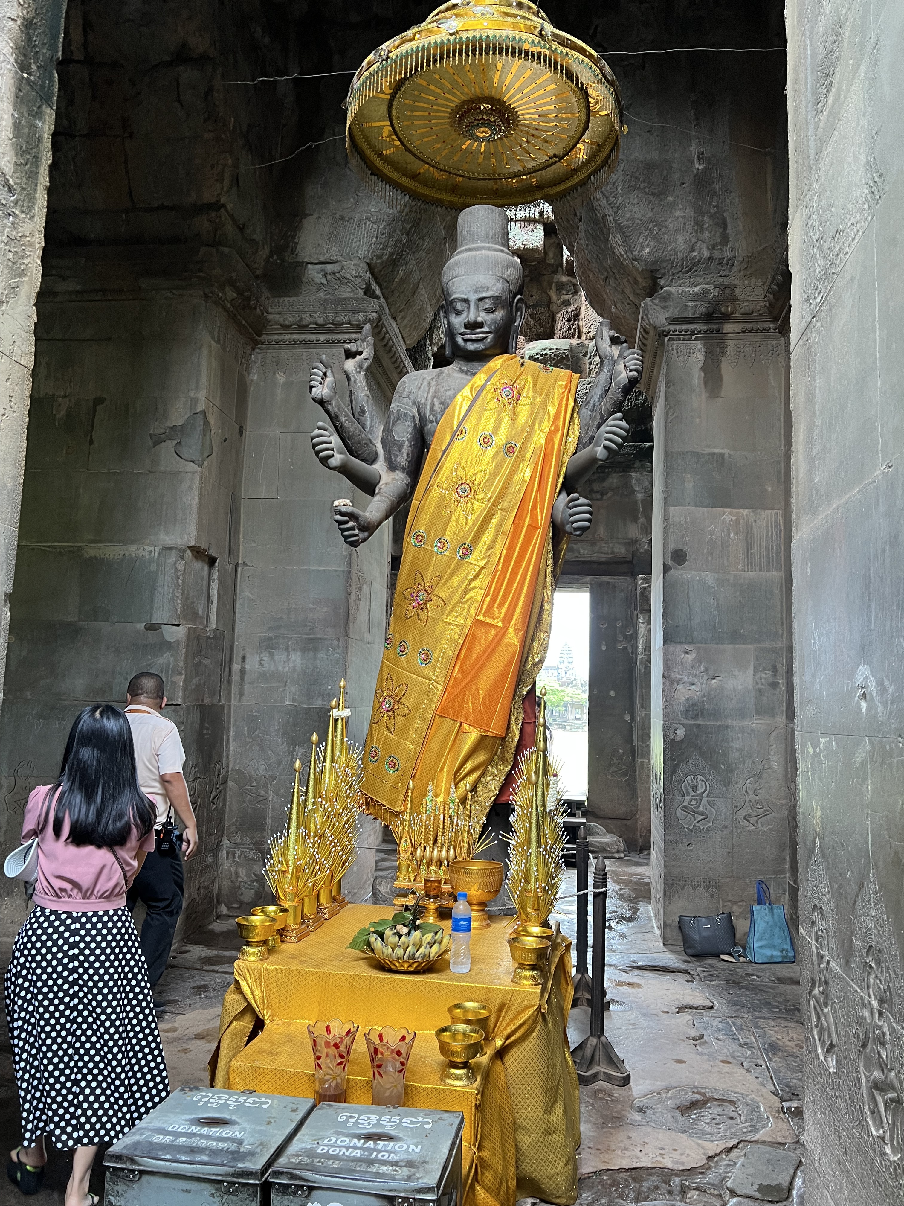 Nous sommes environ 150 personnes à assister au spectacle. Notre guide nous explique qu’avant le Covid, il y avait environ 1000 personnes. Nous sommes vraiment conscients de la chance que nous avons de découvrir les temples sans trop de touristes. Après le lever de soleil, nous passons environ trois heures à explorer Angkor Wat. Nous avons pu monter au troisième étage du temple sans aucune attente.