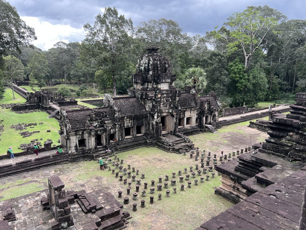 On termine par le temple Baphuon que nous n’avions pas pu voir avec le guide en raison de la pluie, le temple est surnommé le temple de François Fillon car il a été rénové par les Français et inauguré par François Fillon en 2009. Le temple se trouve en plein milieu d’une forêt rempli de singes très curieux, ce qui le démarque par rapport aux autres. Il est construit tout en hauteur et offre ainsi une vue magnifique. Il est interdit aux femmes enceintes et aux enfants de moins de 12 ans. Il est vraiment superbe. On termine notre journée à temps car la pluie se remet à tomber.