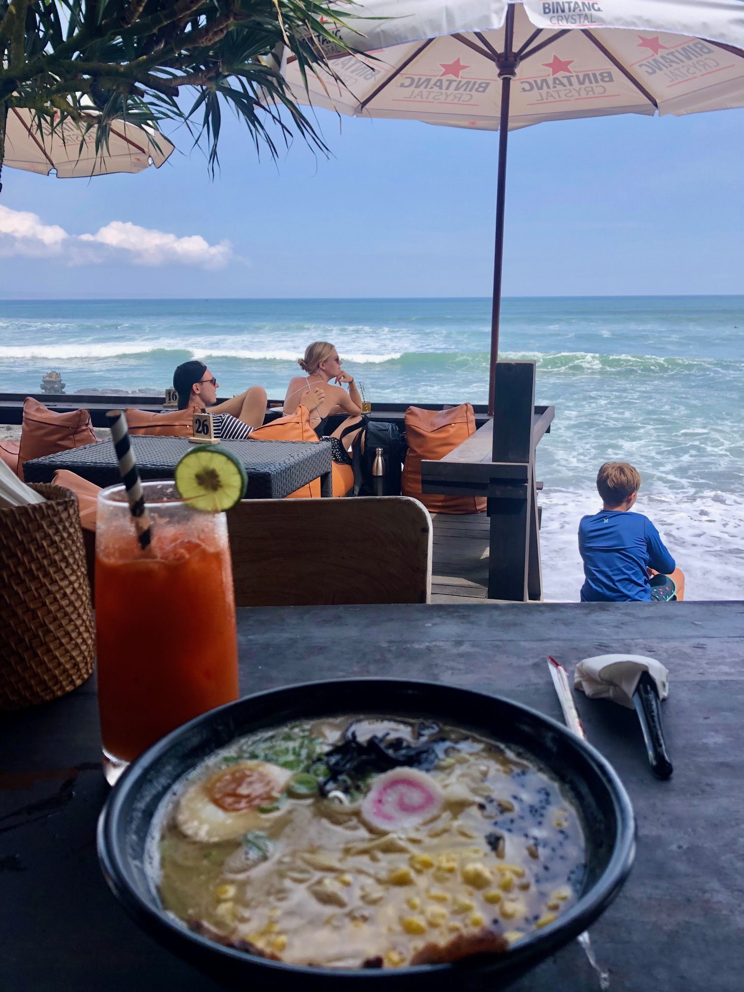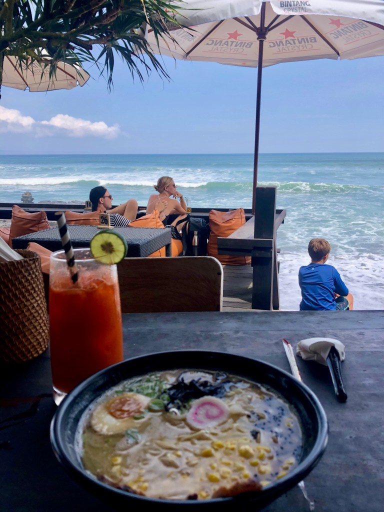 On prend le scooter pour 30 minutes direction Seminyak et le Kudeta qui est un beach club gratuit. Pour occuper certains transats, vous devrez payer un minimum de consommation mais les fatboy restent gratuits. Il y a également une piscine qui surplombe la mer. On y a passé l’après-midi. La musique était très sympa, un DJ arrive en fin d’après-midi. On y a mangé des sushis et bu des milkshakes. Tout était bon !