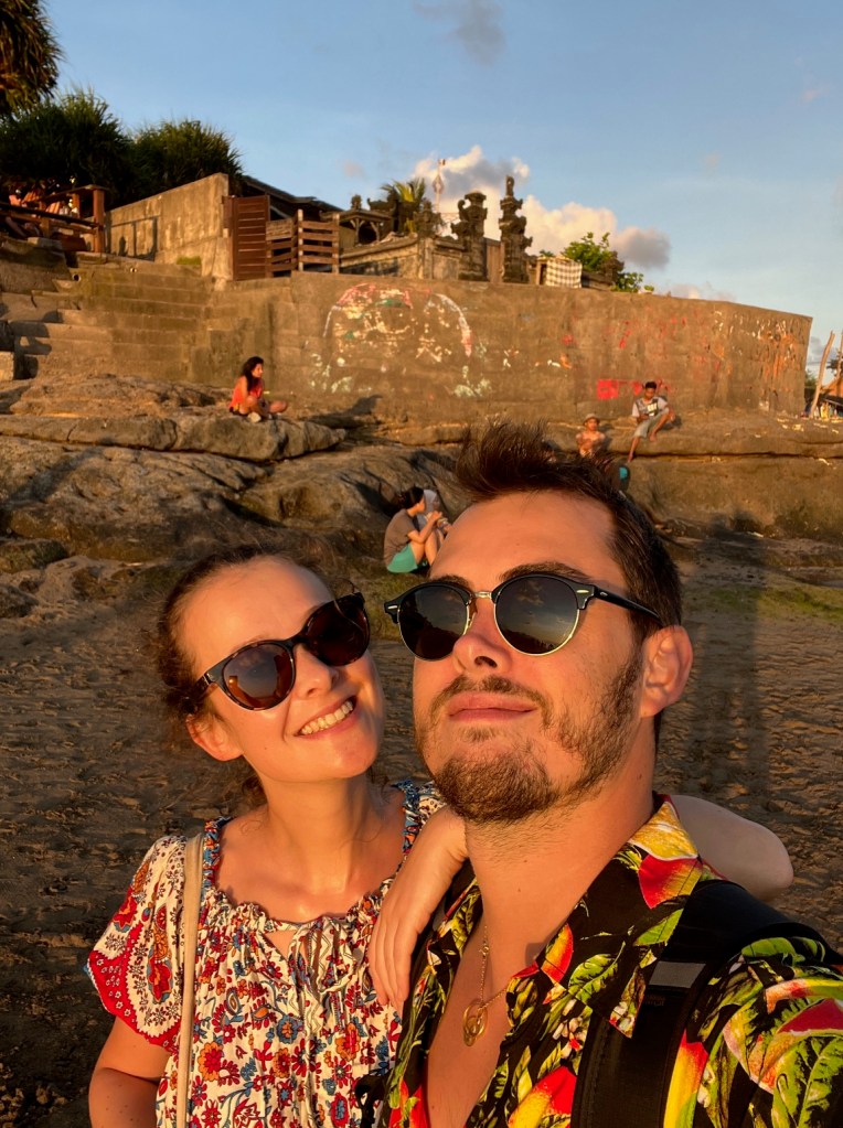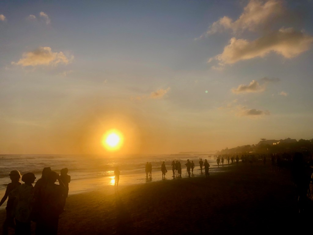 Ce matin on commence par louer notre scooter pour 300.000 IDR (environ 17,50 euros) pour quatre jours. On part en direction d’Echo beach qui est une grande plage de sable gris. Vous y trouverez des transats un peu partout, ainsi que des cours de surf. Il est par contre impossible de s’y baigner tellement les vagues sont importantes, et le courant est fort. On s’y promène puis on déjeune chez Seaweed : lieu très beau, face à la mer. La nourriture est bonne sans être incroyable.