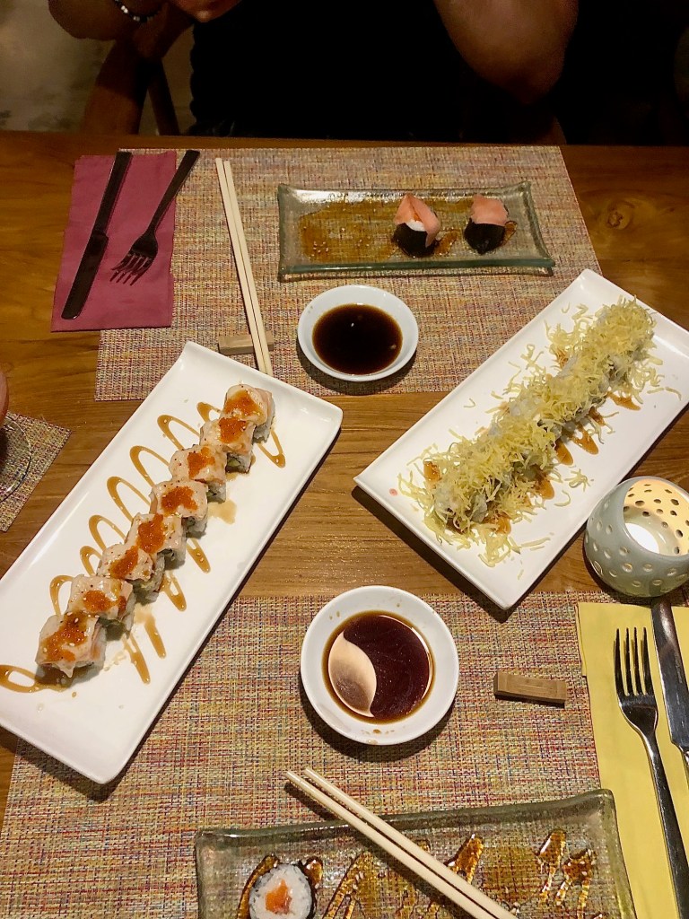A la nuit tombée, nous partons dans le centre d’Ubud. Ma première impression a été assez négative : des embouteillages partout, des voitures partout, c’est bruyant, il n’y a pas de trottoirs, lampe torche obligatoire sur les routes plus discrètes. Nous dînons chez Rouge : il s’agit d’un restaurant, d’un bar mais aussi d’un hôtel. Nous testons les sushis et les cocktails. Tout est bon, mais mention spéciale pour les cocktails.