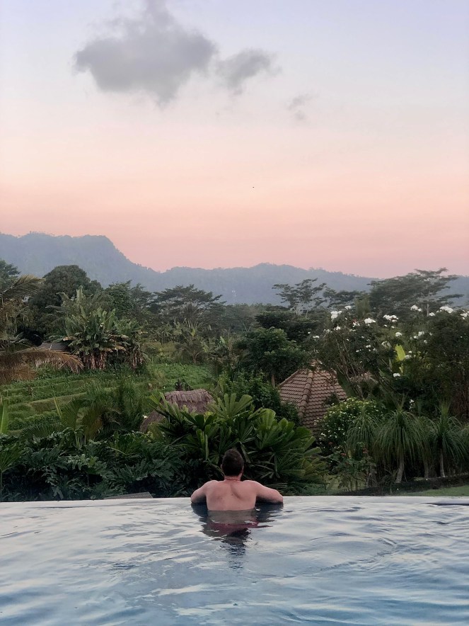 Nous logeons à l’hôtel Sawah Indah Villa, un endroit magnifique en plein cœur de la nature. La chambre est construite en bois et dispose d’une grande terrasse. Depuis votre lit, vous voyez les rizières ! La salle de bain est à l’extérieur ! Le personnel a été également d’une grande gentillesse. Je regrette toujours de ne pas y avoir passé deux nuits. L’hôtel est également équipé d’un spa ainsi que d’une grande piscine à débordement avec une vue magnifique sur les rizières.