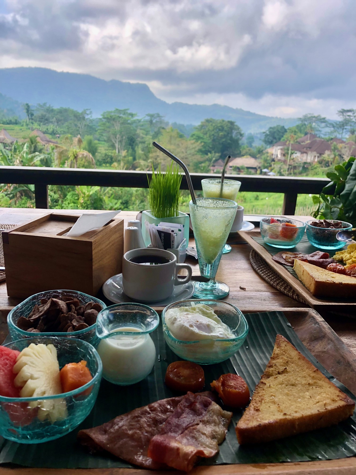 A notre arrivée, nous déjeunons au warung de l’hôtel qui a également une vue magnifique sur les rizières et la nature. La nourriture est également délicieuse. Nous louons ensuite un scooter à l’hôtel et partons explorer les environs. Nous alternons entre nature et petit village, c’est authentique et très beau, il n’y a quasiment aucun touriste.