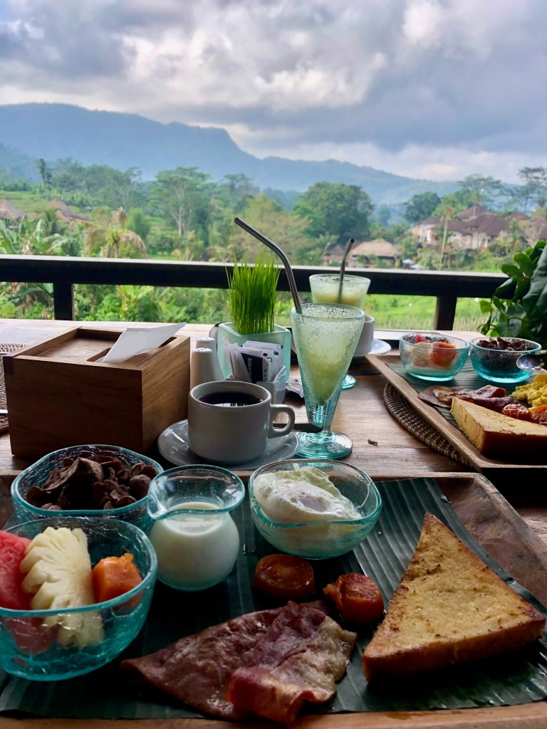 Nous déjeunons ensuite au warung Uma Ceking. Le déjeuner est délicieux. Les prix sont plus élevés qu’ailleurs mais cela se justifie largement par la vue qu’on a.