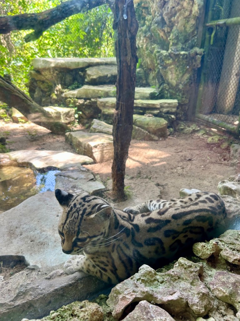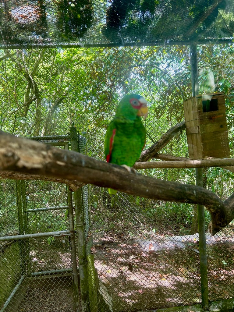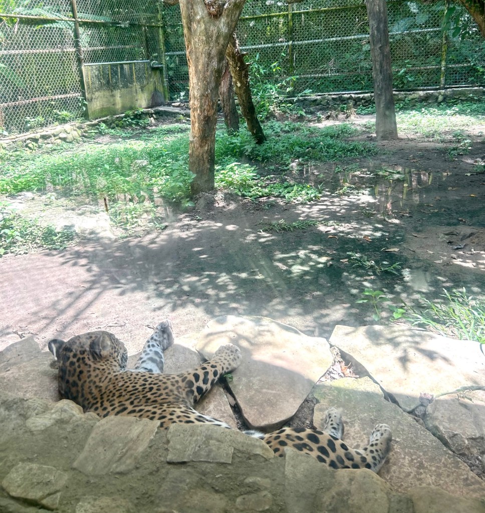 Après un petit déjeuner encore délicieux, nous partons en direction de l’Ecopark Aluxes de Palenque, qui n’est pas vraiment un zoo mais un endroit où ils soignent les animaux et/ou les préservent pour ensuite repeupler le Chiapas de sa faune initiale. Le projet est bien expliqué tout au long de la visite.