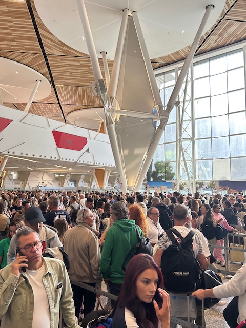 Départ matinal de Marrakech pour rentrer à Paris : notre avion décolle à 11 heures. Nous avons opté pour un transfert organisé par notre riad pour le prix de 25 euros. Le taxi nous attend place Jemaa el-Fna et le trajet pour l’aéroport dure 20 minutes. Prenez une bonne marge avant votre avion car il vous faudra passer les étapes suivantes :