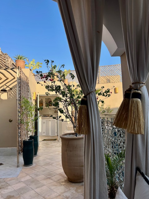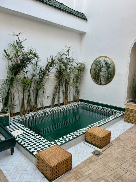 Nous sommes accueillis au riad par Katy avec du thé à la menthe et des gâteaux marocains. Katy est française et s’est installée à Marrakech. Elle vit dans son riad qu’elle a entièrement fait rénover. Dès notre arrivée, nous avons reçu plein de bons conseils pour des visites, des restaurants, des SPA. Katy peut également vous réserver quelques activités et propose même des cours de cuisine au sein du riad avec la gouvernante, Zakia. Vous pouvez retrouver le riad Kenarsa en cliquant ici.