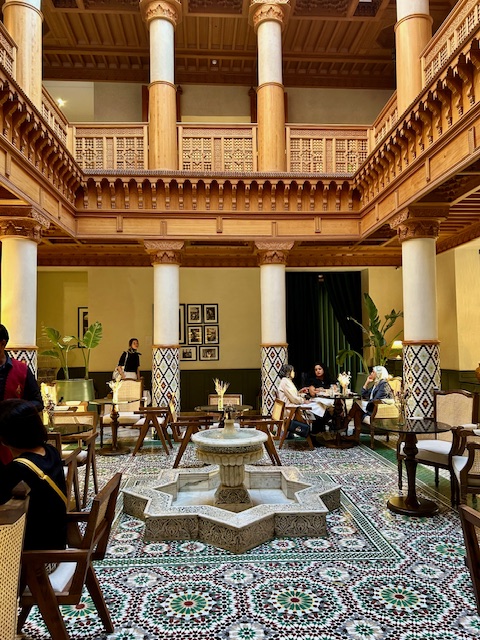 Nous nous rendons ensuite en direction du quartier Kasbah situé au sud de Marrakech (accessible à pied depuis la Médina). Nous passons devant le musée des arts culinaires qui dispose d’un salon de thé magnifique.