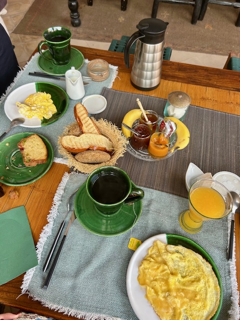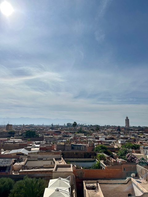 Nous commençons la journée par un copieux et délicieux petit déjeuner préparé par la gouvernante de notre riad et servi sur le rooftop.