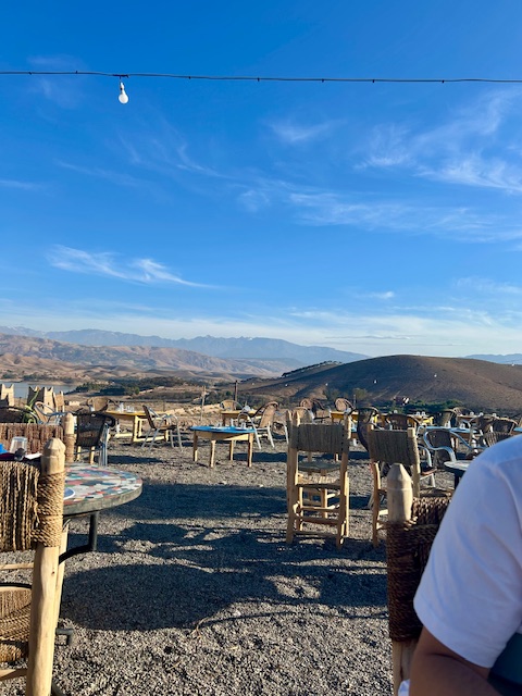 Pour l’après-midi, nous avons booké une excursion via Get Your Guide pour explorer l’Agafay pour le prix de 35,70 euros par personne. C’est la première fois que j’utilisais cette application mais j’ai eu des retours très positifs de mes connaissances et j’en suis pleinement satisfaite. Notre tour commence devant l’hôtel Tazi ou notre mini bus nous attend. Nous sommes une dizaine de personnes. Nous prenons la route pour trente minutes et réalisons notre premier stop dans une coopération d’argan. On nous sert du thé à la menthe et on goute de l’huile d’olive, du miel et un délicieux mélange huile d’argan cacahuète. On nous explique ensuite très rapidement comment est fait l’huile d’argan car le but est uniquement de nous faire acheter l’huile d’argan dans la boutique ! Ce stop n’a que peu d’intérêt.
