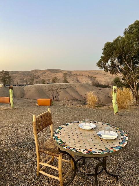Nous reprenons la route pour l’Agafay. Nous patientons 30 minutes pour monter sur un chameau. Cette promenade dure 15 minutes : cela peut paraitre peu mais en réalité c’est assez douloureux donc c’est tout à fait suffisant !